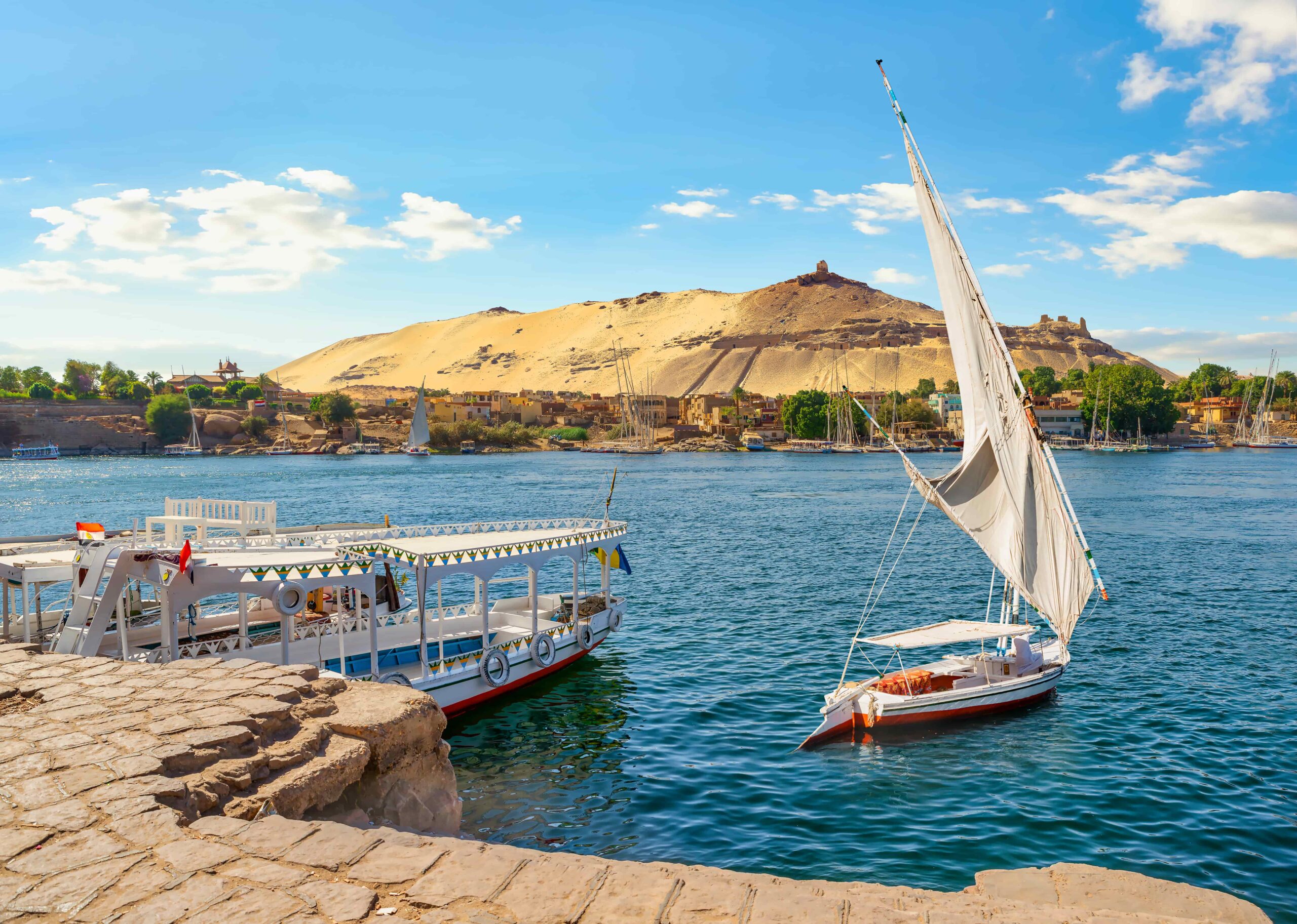 - La città più tranquilla e affascinante sul Nilo, tra feluche bianche, villaggi nubiani colorati e tramonti indimenticabili. Perfetta come base per scoprire il Sud dell’Egitto in totale relax.